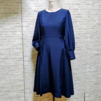 紺のシルクでワンピースを作りました。ウェストからスカートにかけての切り替え線はボディの上でカッティン … >>