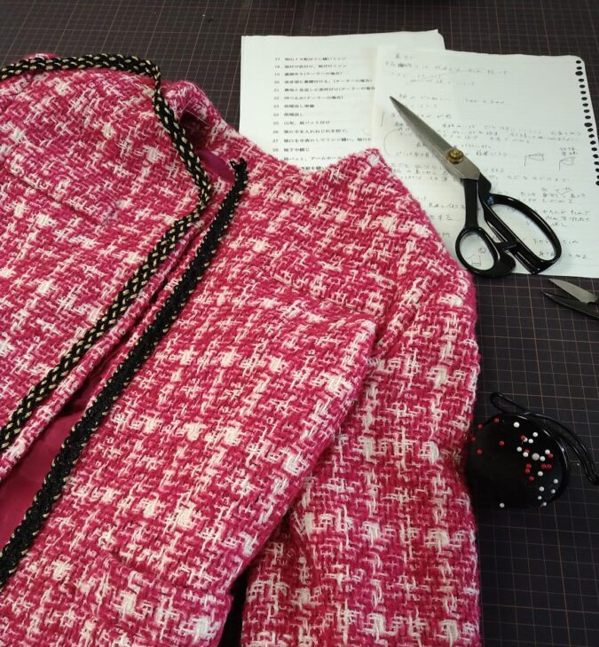 裏付きのノーカラージャケットにブレードを飾ってシャネル風ジャケットにするつもりです。