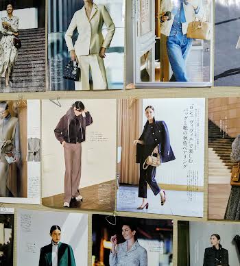 壁に貼ったファッション雑誌の切り抜きを少しずつ貼り替えています。