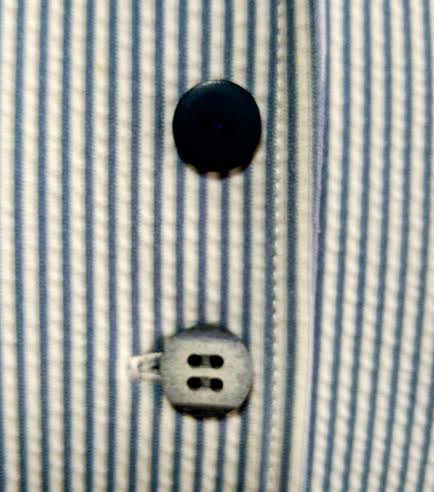濃紺のボタンを色味の近いグレーの縁取りのあるボタンに替えています。