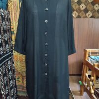 インドンネシアのフローレス島で手に入れた絣布に自作の生地を合わせました。ドロップスリーブのコート、身 …