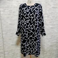 モノトーンですが、メリハリのある華やかな印象のプリント生地で定番になっているワンピースをお作りしまし …
