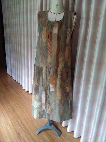 小さいピースの配置を考えてパッチワークしたものでジャンパースカートを作りました。