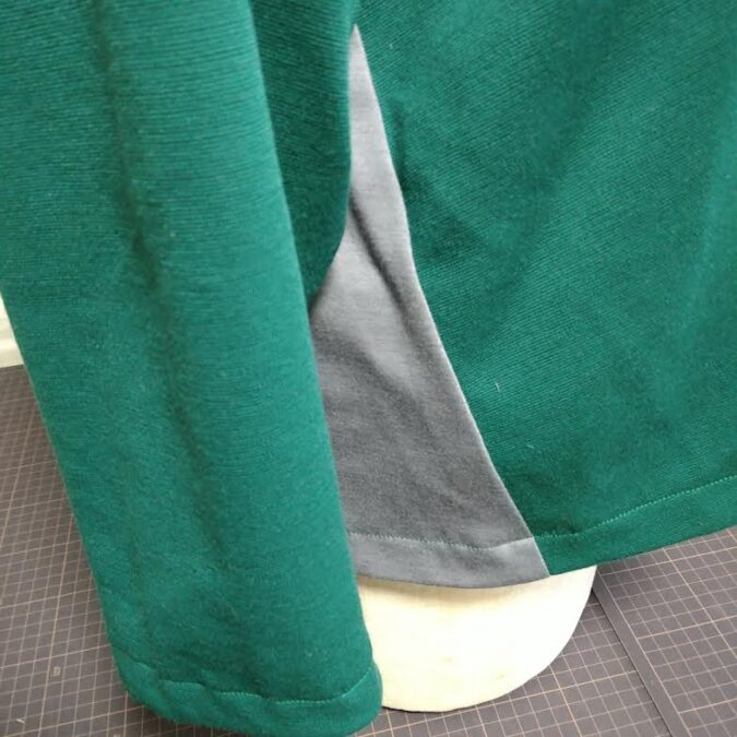 色違いのグレーのニットを、脇のマチと見返しに足しました。