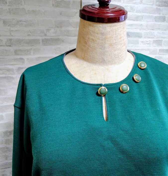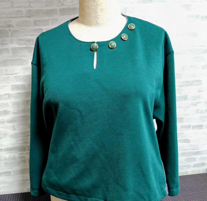 上質のウールニット、きれいなグリーンでプルオーバーが完成しました。
