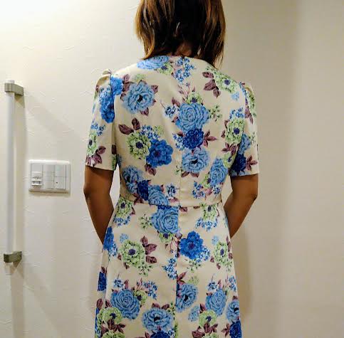 美しい花柄のコットンサテンを使ってワンピースを作りました。